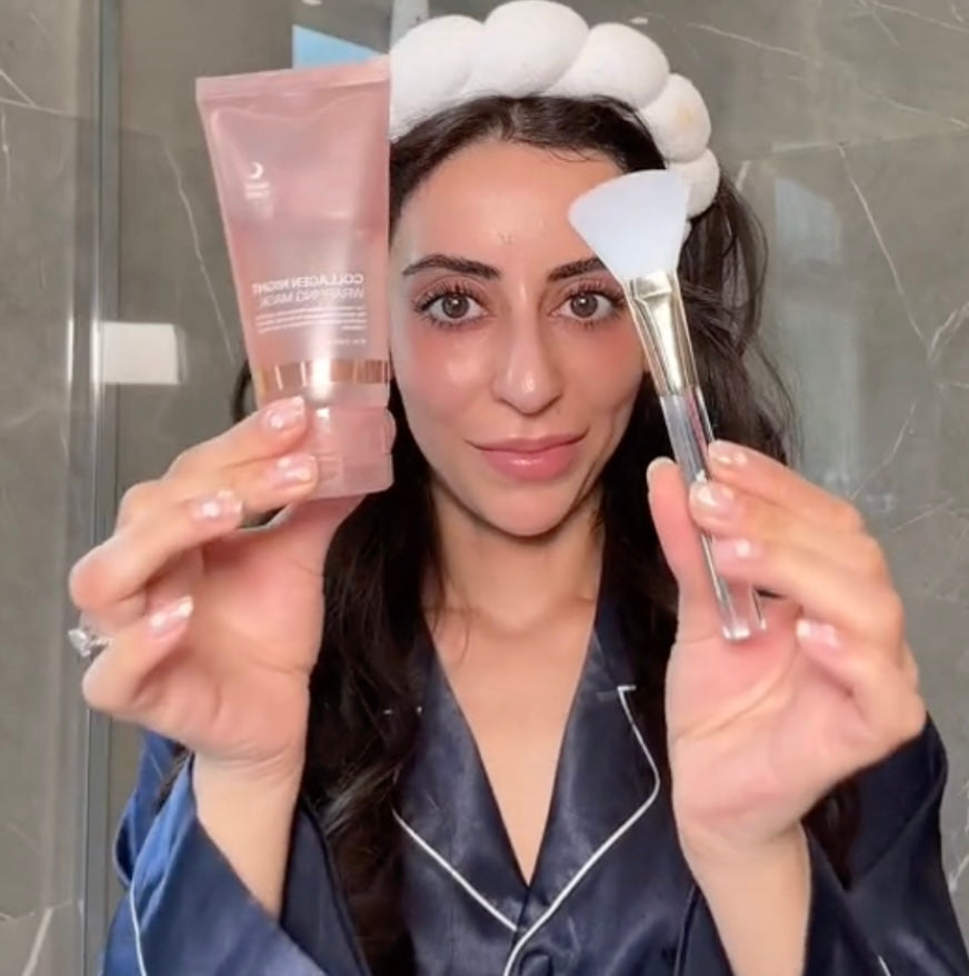 - Squeeze the collagen gel onto the applicator brush and apply to your face.