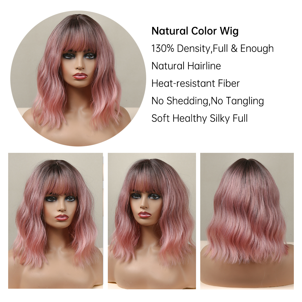 Short Water Wave Synthetic Pink Wigs 12" - BEAUTY BELLO®